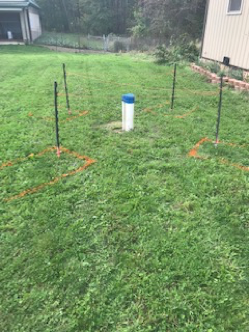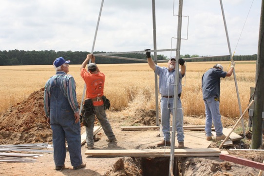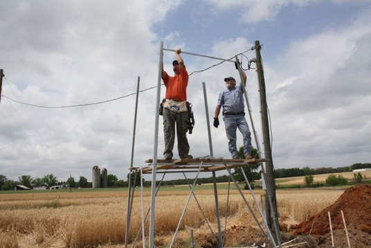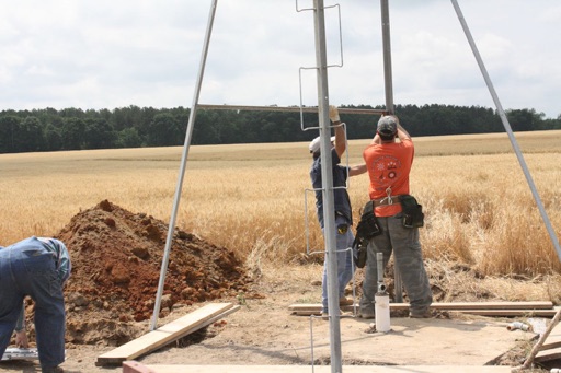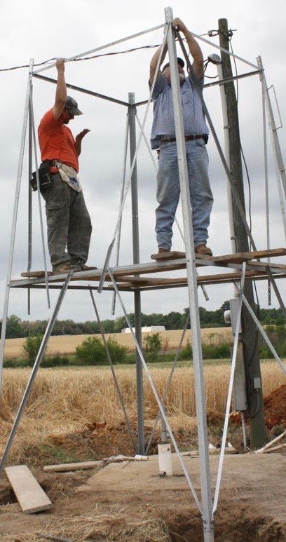 Laying a square based on the tower spread and marking the footer holes for